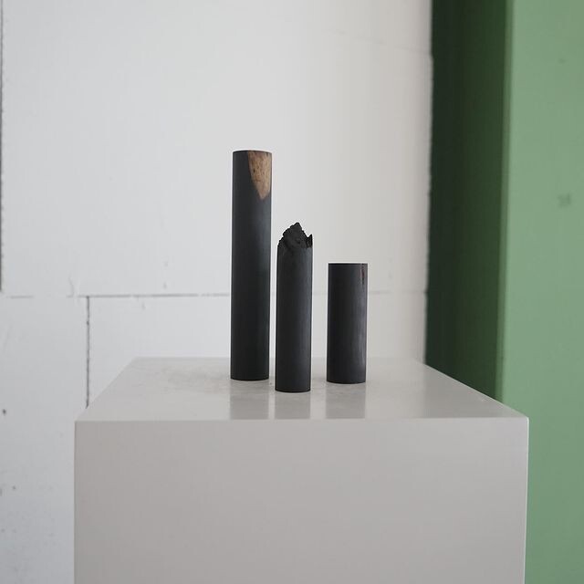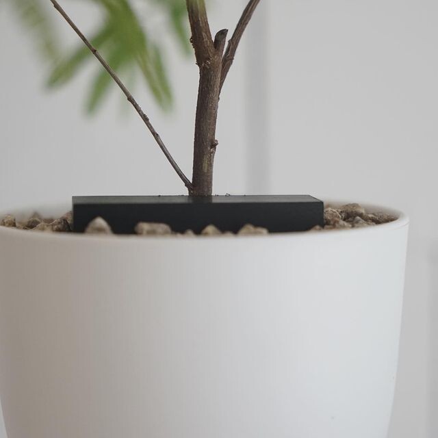 나무 고유의 검정색은 흰색분 위에 놓여지거나 작업된 식물 주변에 배치함으로써 함께 조화롭게 한다.