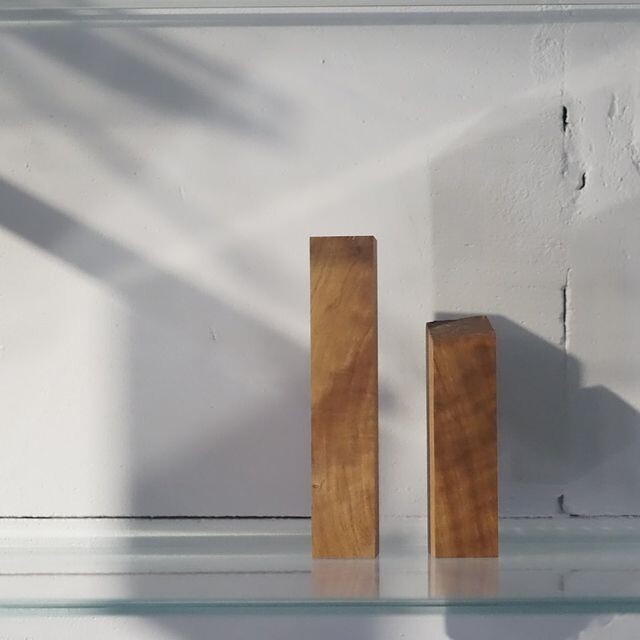 오브제로 표현하는 방법 중 하나로 재단된 나무를 활용한다.